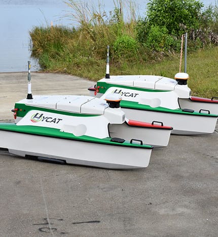 Launched in 2018, the HYCAT was designed from the ground up to set the bar for man-portable ASV survey systems. Developed in partnership with Xylem Brands (YSI, SonTek & HYPACK), this unique ASV combines sensors from multiple brands to provide a comprehensive water studies package for site monitoring. Sensors have plug and play capabilities, allowing the HYCAT to be customized to your specific site needs.