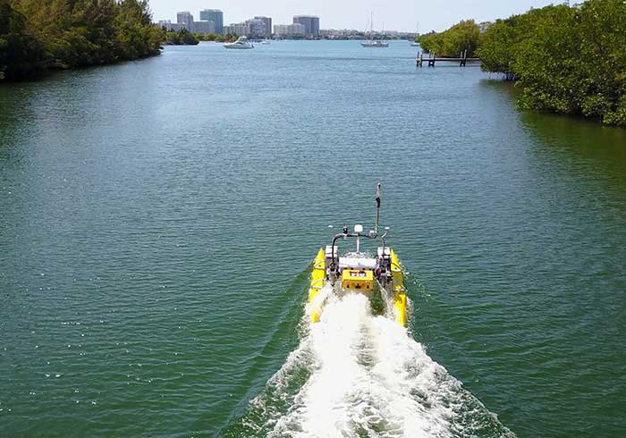 The base vehicle was designed to support large multibeam sonar systems and a 50 ft cast winch, while customizable sensors include bathy/side scan sonar and water quality sonde. SeaRobotics’ ASV driver for HYPACK and QINSy provides streamlined interfacing, making the vehicle intuitive, safe and efficient to operate.